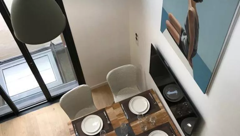 Ce duplex chic et très lumineux, type loft, est composé d'une chambre équipée d'une literie haut de gamme de 160x200 avec une armoire en teck, d'une salle de bain avec une grande douche à l’Italienne, sèche-cheveux professionnel et linge de bain, de toilettes indépendantes, d'une cuisine américaine entièrement équipée (four, four micro-onde, réfrigérateur, lave-vaisselle et cafetière Nespresso avec comptoir). Il dispose également d’un salon de grande hauteur avec baie vitrée et stores vénitiens, d'un canapé haut de gamme convertible, d'un espace repas, d'une télévision à écran plat de 109 cm avec les chaines Orange, d'un escalier en colimaçon métallique pour accéder à la deuxième chambre équipée de deux lits jumeaux avec literie haut de gamme de 80x200 et d'un point d'eau. Il n'y a qu'une seule salle d'eau située dans la chambre principale. Idéale pour un couple et 2 enfants.