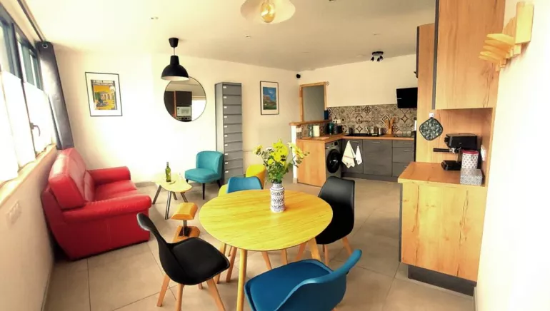 Logement moderne, très équipé et lumineux au cœur de la Suisse Normande. Idéalement situé à côté de l'Orne, de la Vélo Francette (voie verte) et le long des GR Tour de la Suisse Normande et de la boucle du Hom. Proche de la base nautique , du centre ville et du centre aquatique, le logement comprend 2 chambres. L'une est équipée d'un lit King Size qui peut se transformer en 2 lits simples et l'autre d'un lit double en 160x200. La cour commune a été conçu pour votre détente. un garage à vélo sécurisé, équipé de prises électrique est à votre disposition.