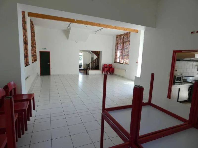 Dans un écrin de verdure en plein coeur de la Suisse Normande, à proximité du site naturel de la Roche d'Oëtre et de la maison de la rivière et du paysage. Nombreuses activités aux alentours immédiats : randonnées pédestres, VTT, parc acrobatique dans les arbres, canoë-kayak, delta-plane, pêche, restaurant...Maison indépendante : séjour, salle d'accueil pouvant recevoir 52 personnes, cuisine professionnelle. 1 chambre au rez de chaussée (1 lit 1 personne) avec salle d'eau et wc, à l'étage, 6 chambres (5 lits 1 personne dont lits superposés), 4 éléments de 2 douches, 8 lavabos, 5 wc. Chauffage central gaz. Terrain de volley-ball. Caution ménage : 132€ et caution vaisselle : 50€.